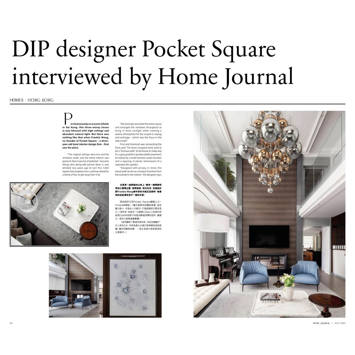 設計師將西貢一棟擁有30年歷史嘅獨立屋,翻新成滿載當代風格嘅明亮家園!早前佢哋更接受室內設計雜誌 Home Journal 專訪,細談背後嘅設計理念如何以用家出發 ,二人表示:「客戶從市區搬到這裏,就是希望得到真正的放鬆,遠離繁囂喧鬧。室外和室內生活的共融,使屋主能在大自然之中治癒身心。」