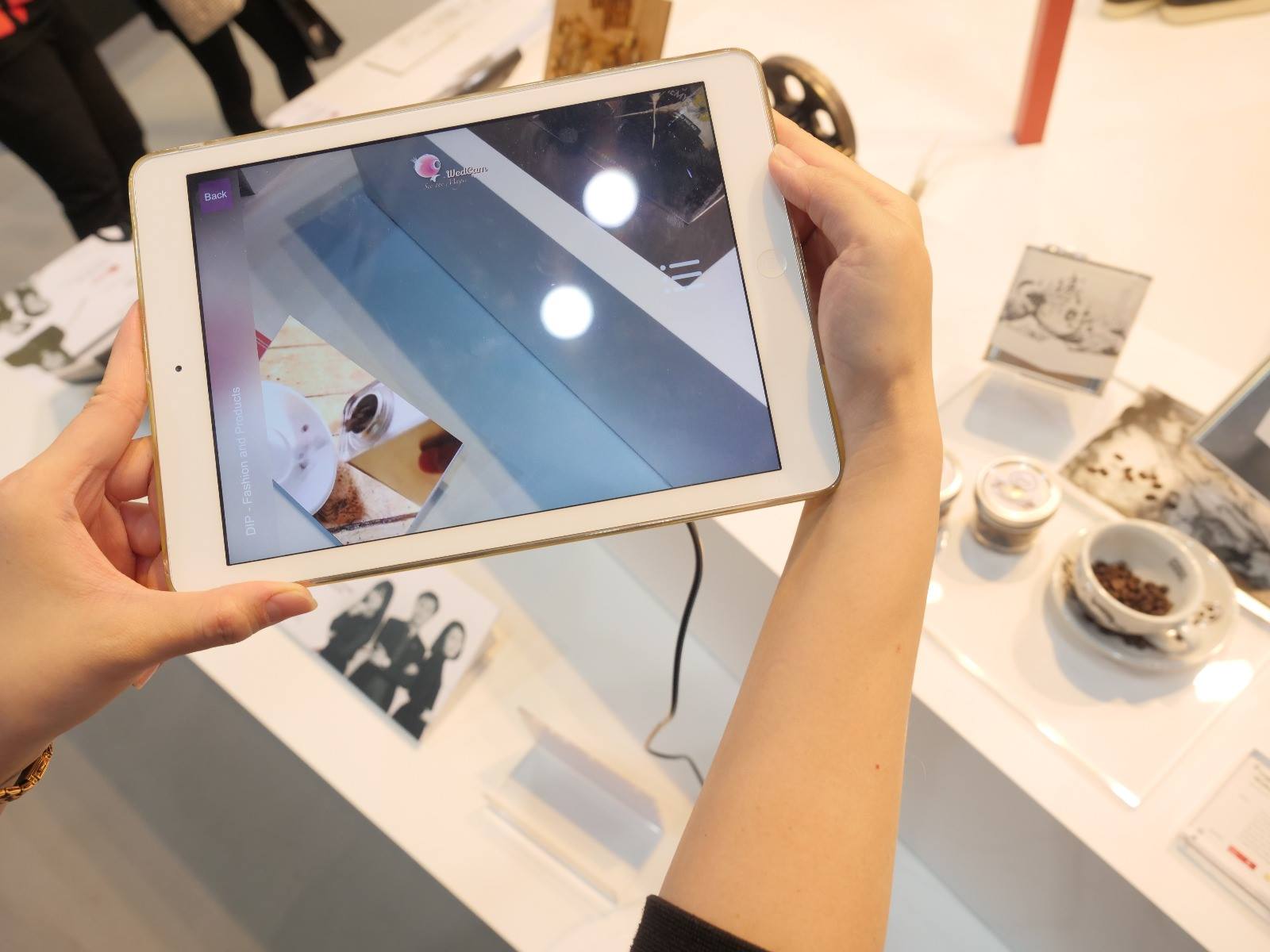 Supported by our incubatee Creote Studio Ltd, all incubatees information boards in the area were empowered by AR technology. Visitors were able to download freely an app named “WedCam” using smartphones or tablets to access extra video contents of the designers.